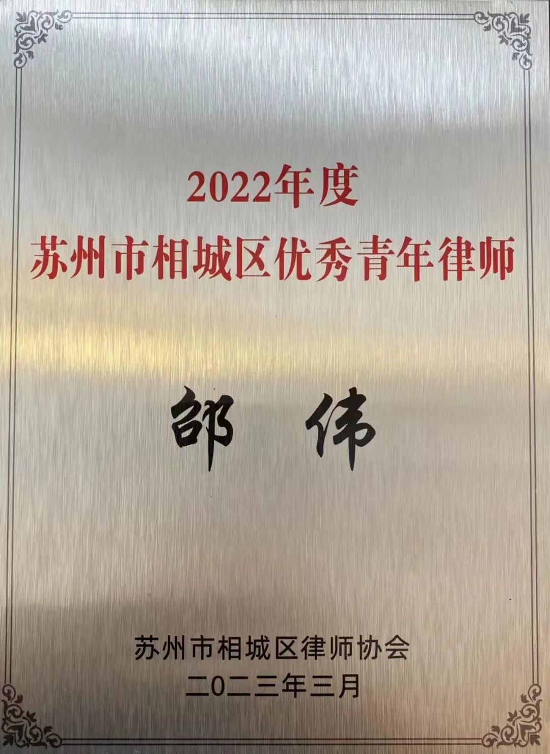 我所合伙人何剑律师荣获“2022年度相城区优秀公益律师”。邵伟律师荣获“2022年度相城区优秀青年律师”称号。王余芹律师荣获“2022年度相城区优秀律师”称号。